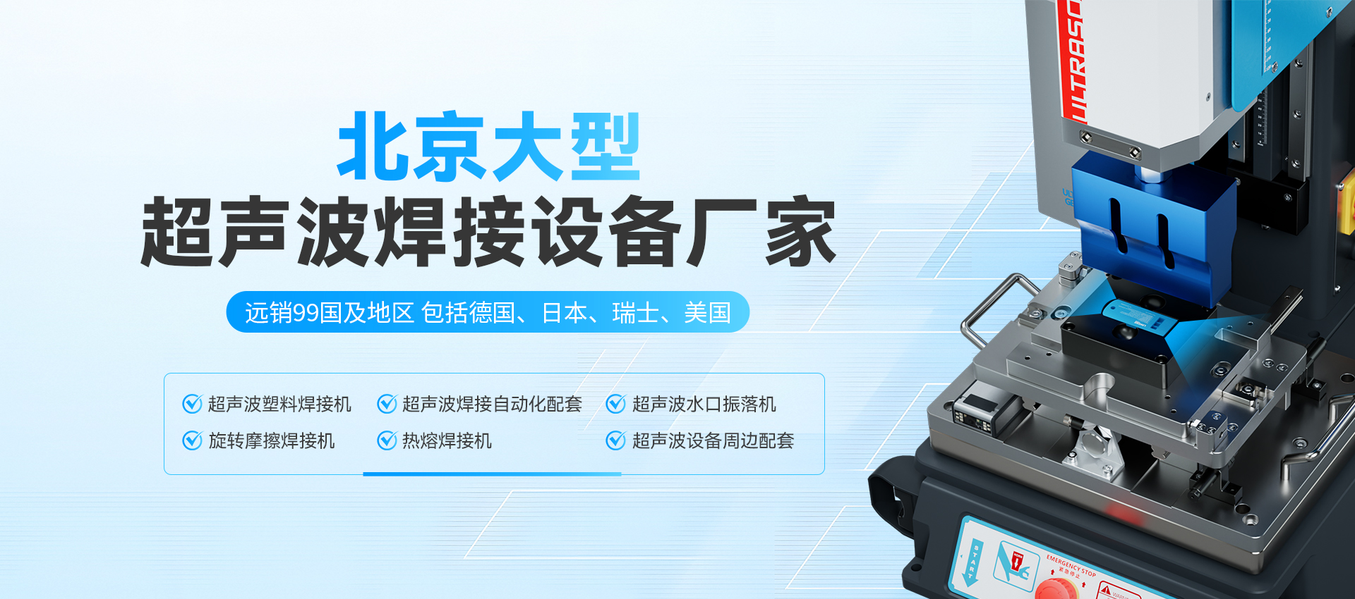 北京正宏尼可技術(shù)有限公司是一家從事,生產(chǎn)、銷售、服務(wù)為一體的,現(xiàn)代化技術(shù)企業(yè),公司主要開(kāi)發(fā)生產(chǎn)各種:超聲波塑料焊接設(shè)備、塑料熱熔設(shè)備、高頻熱合設(shè)備、各種濾芯焊接設(shè)備、汽車(chē)內(nèi)飾件焊接設(shè)備,塑料多點(diǎn)熱鉚機(jī),塑料熱板機(jī)、塑膠旋熔機(jī)、震動(dòng)摩擦焊等設(shè)備。